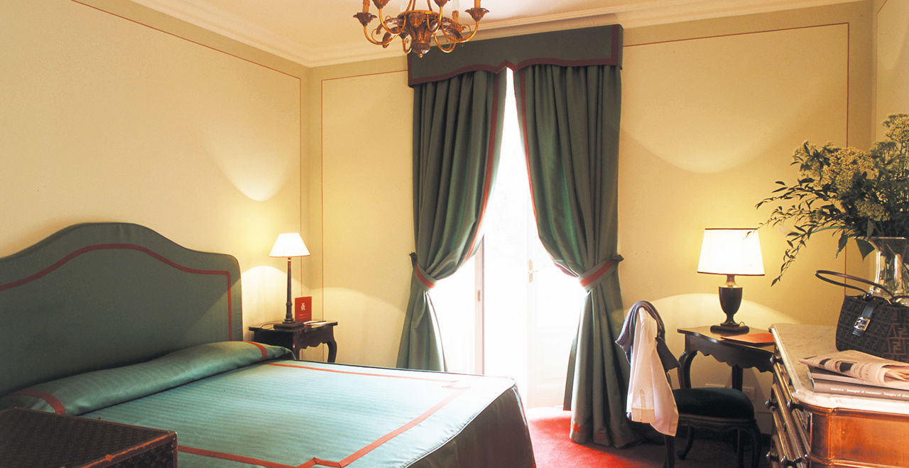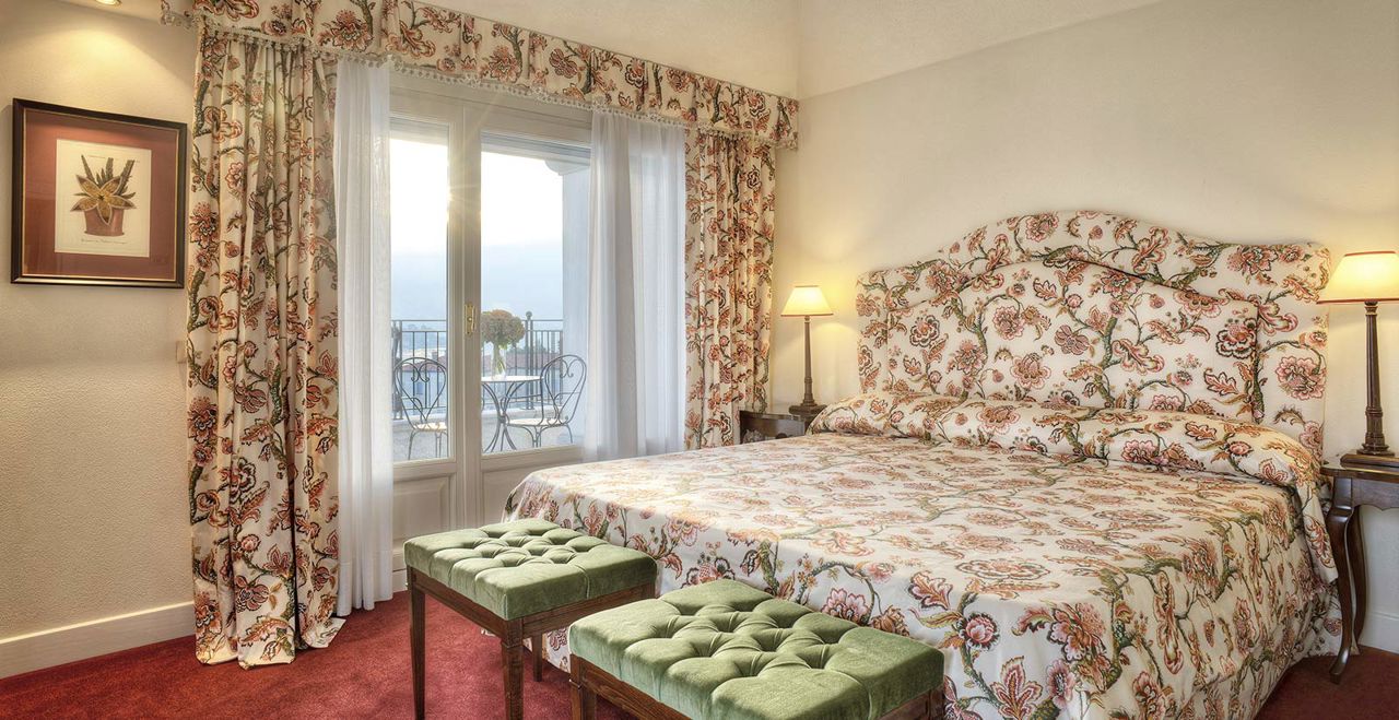 Die Zimmer und Suiten des Hotels sind im französischen Stil schlicht und elegant eingerichtet: Massivholzmöbel und klassischer Stil, Kronleuchter, Teppichboden und einige Räume mit Parkett. Lichtdurchflutet und behaglich haben sie fast alle Seeblick, von den einfachen Standard bis zu den geräumigeren Superior, von den eleganten Deluxe zu den imposanten Junior Suiten und Suiten und einige haben sogar zwei Etagen.