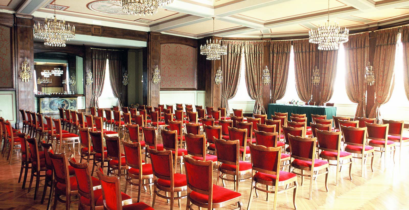 Coniugazione perfetta tra lavoro e cura del benessere personale, le sale dell'hotel per incentive e MICE vicino Stresa si caratterizzano per i loro preziosi affreschi e gli spazi comuni ideali per una pausa caffè o un aperitivo. Le sale riunioni e meeting della struttura, elegantissime, offrono il contesto adatto per ospitare conferenze, riunioni e incontri di lavoro grazie a soluzioni modulari. Organizza il prossimo evento della tua carriera professionale al Grand Hotel Majestic sul Lago Maggiore, per aggiungere l'ingrediente segreto che garantirà il successo delle tue aspettative.
